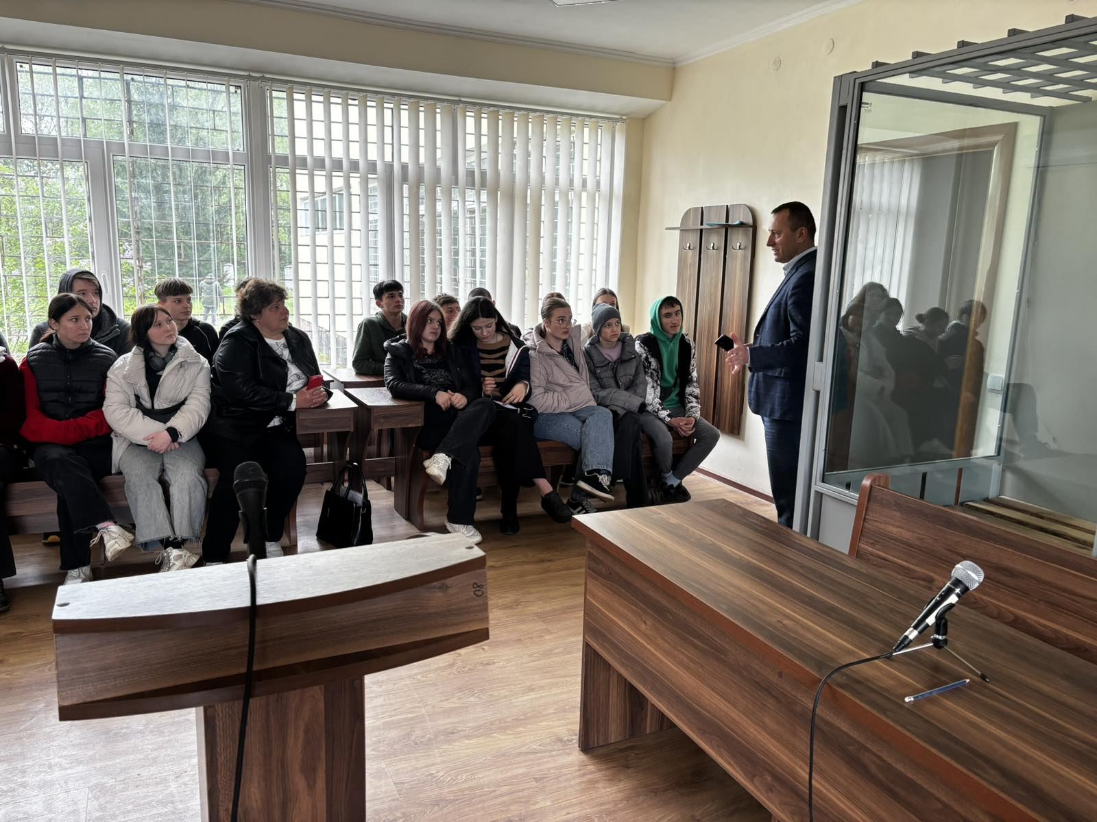Керівник апарату суду Микола Пасічник провів пізнавальну зустріч, де ознайомив учнів з роботою апарату суду, його роллю в організації судочинства та особливостями функціонування судової системи. Цікавою виявилася і його розповідь про символізм суддівського молотка — деталь, добре відома з фільмів, але з несподіваними юридичними нюансами.
